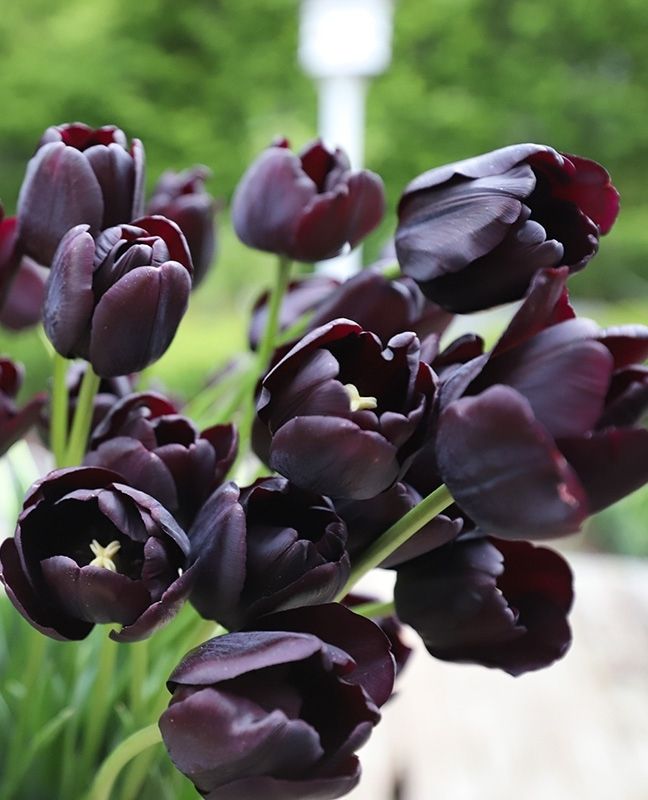 Глибокий, майже чорний відтінок пелюсток із фіолетовим блиском виглядає розкішно як у саду, так і в букетах. Це справжня “чорна перлина” серед тюльпанів.